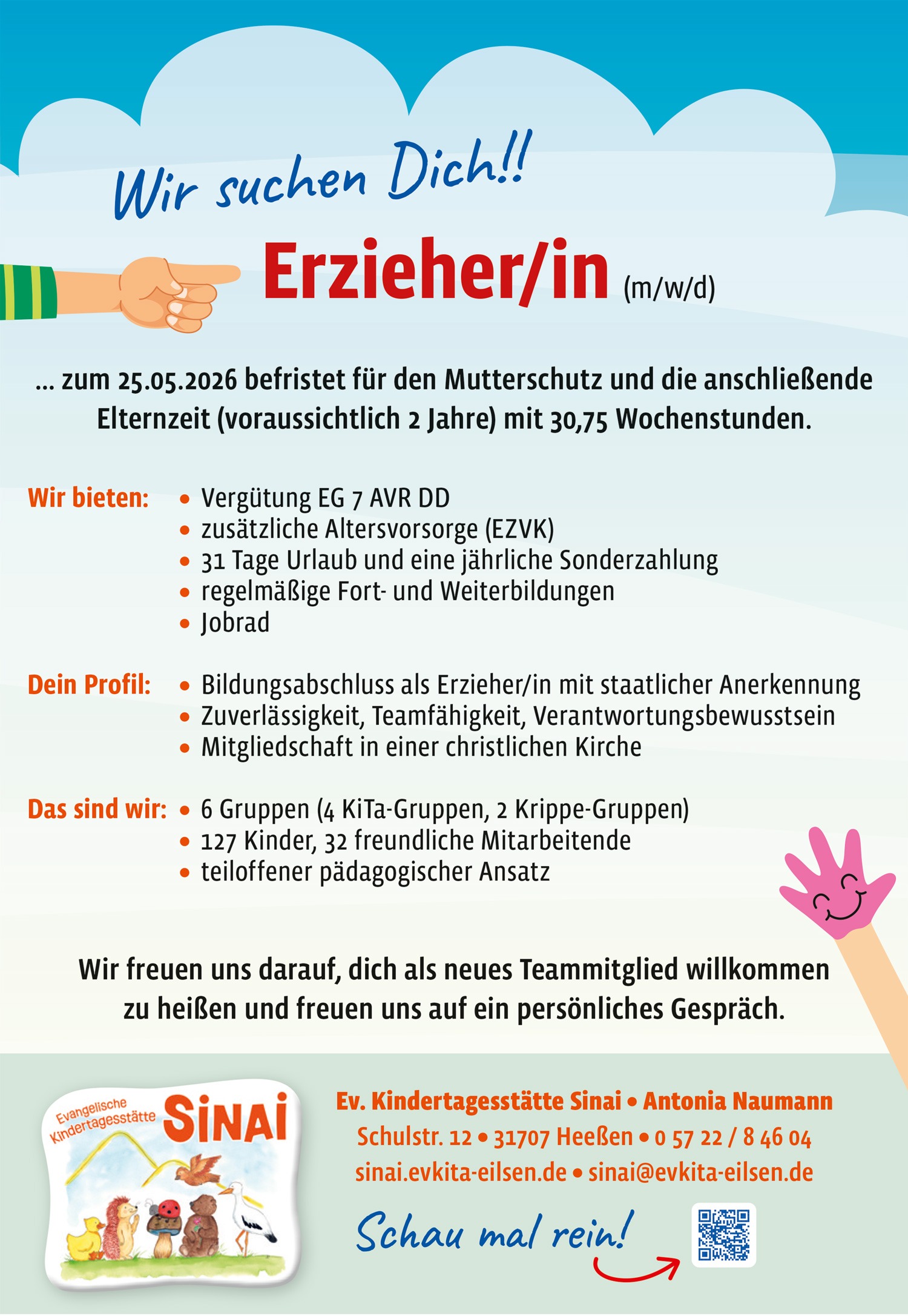 31. März 20267. April 2026Alle, Kinder und Jugend, Stellen Kita Sinai sucht eine Erzieherin Du bist Erzieherin, suchst eine neue Anstellung? Wenn Du dann noch gerne Fahrrad fährst, haben wir ein besonderes Bonbon für Dich…